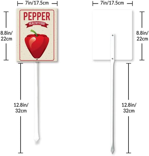- [Extra large size] The plant tags total height 21.6", Width 7“ , Thickness is 0.07". The extra large size of the label makes the graphics are easy to read and attractive. Ther are thick, tall, and sturdy, and go into the ground easily