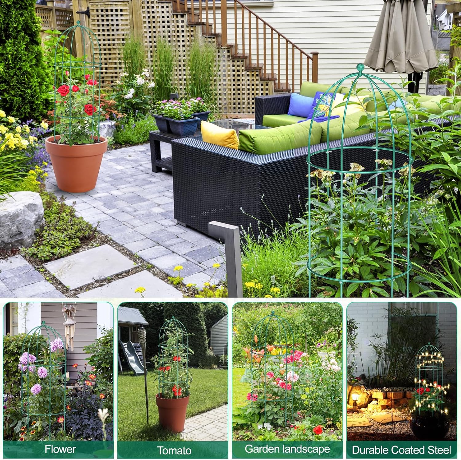 - This Plant Supports for Peonies is designed with a tower obelisk decoration, which will make your garden look unique and different. Provide ample space for your climbing plants and vines to support their upright and healthy growth. It is the perfect decoration for courtyards, gardens, courtyards, etc.