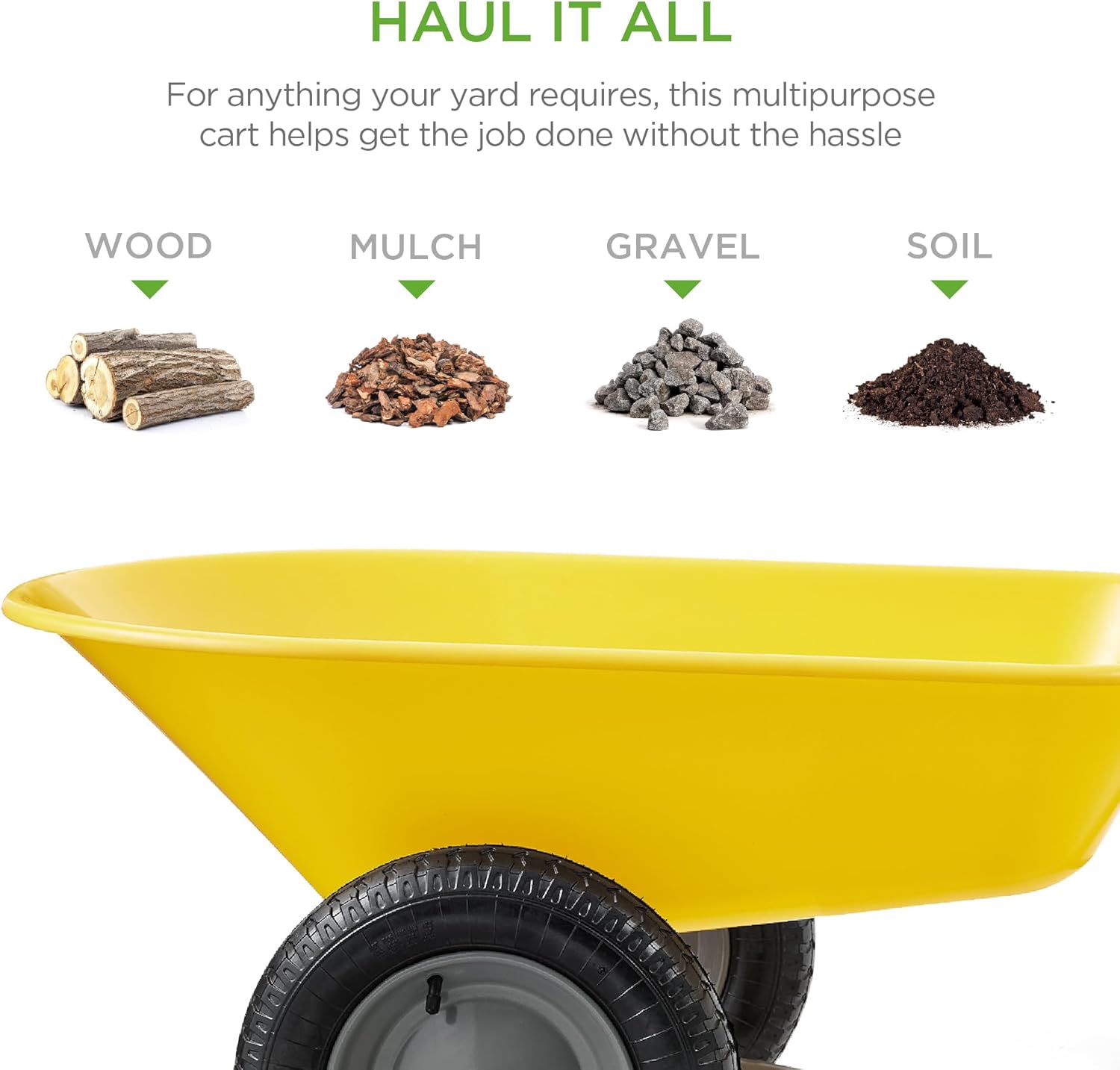 Best Choice Products Dual-Wheel Home Utility Yard Wheelbarrow Garden Cart w/Built-in Stand for Lawn, Gardening, Construction - Yellow