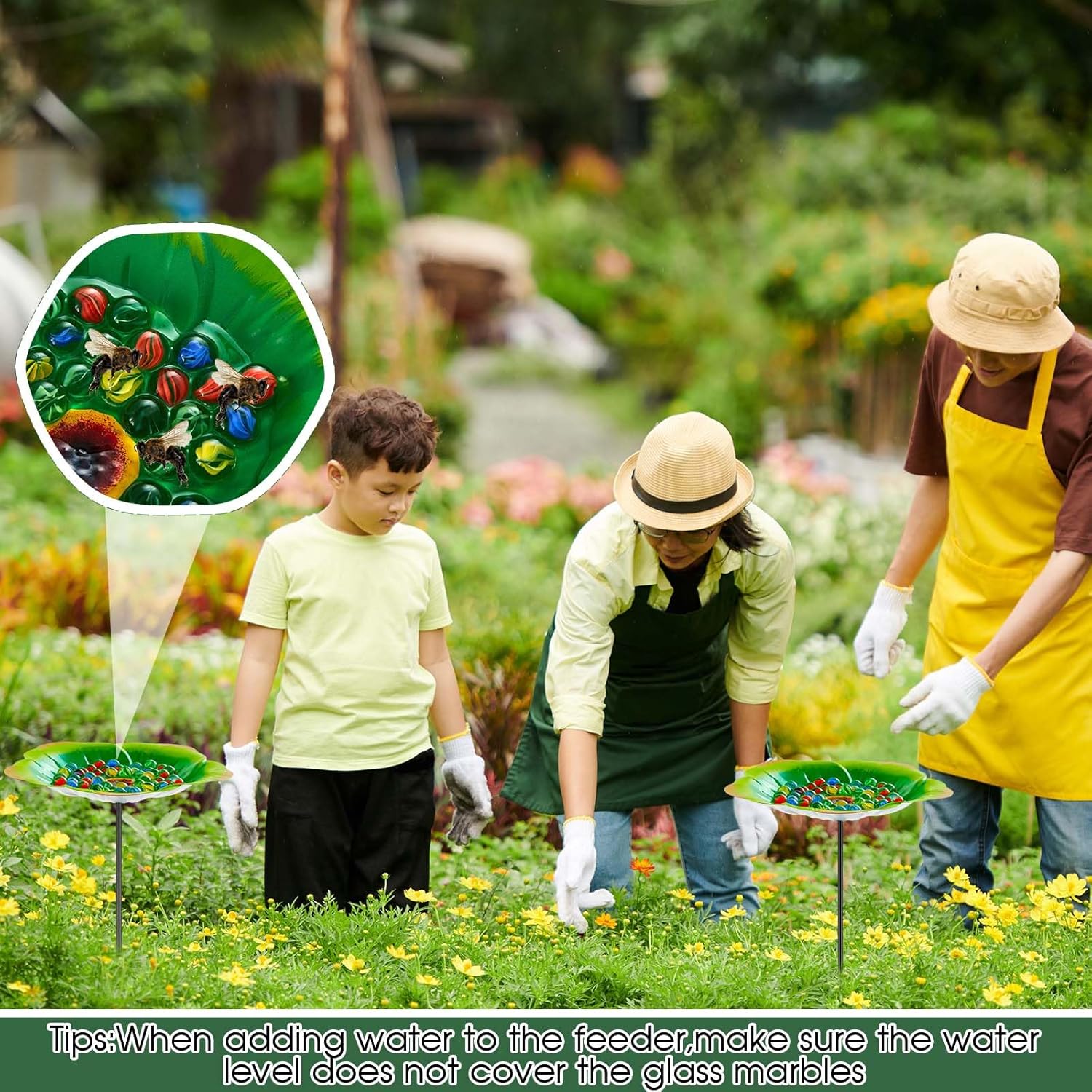- Easy Installation and Maintenance: the bee watering for garden are designed for easy installation, providing an easy solution to support the necessary hydration needs of the bee population in your garden, prevent them from drowning; Requiring minimal effort, the bee feeder becomes an uncomplicated addition to your garden toolkit; Note: the water level should not exceed the height of the marbles