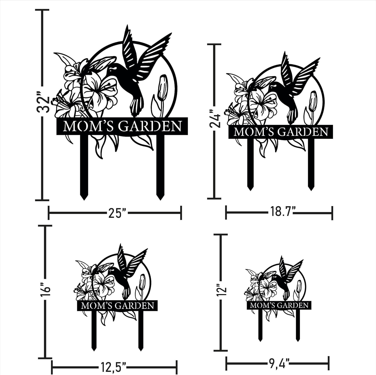 Custom Hummingbird Metal Garden Decor, Personalized Bird with Stakes Garden Sign, Flower Design Personalized Garden Sign, Custom Garden Name Sign, Home Gift, Large Outdoor Decor, Patio Decor