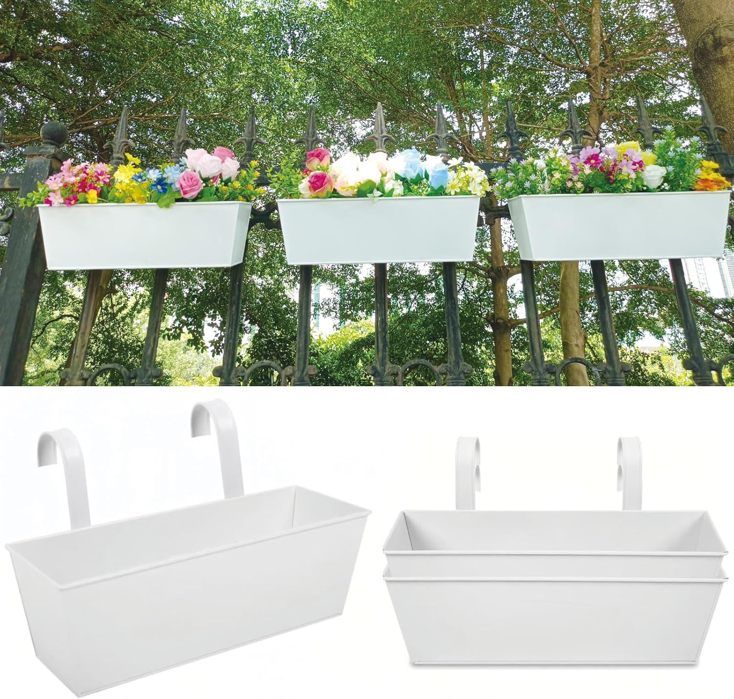 - Maximize Your Garden Space:The rectangular balcony railing planters transform limited spaces into a thriving mini-garden.This special design can be hung on the apartment balcony, window, a porch,garden,railing, anywhere in the room,also can be used as desktop
