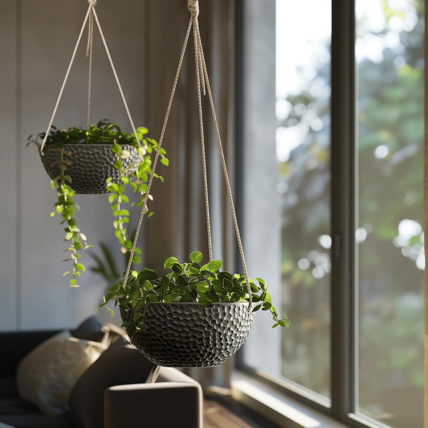 - ADJUSTABLE ROPES - Each indoor hanging planter set comes with triple ropes that can bear up to 20kg (44 lbs) of weight, also 2 hooks for easy hanging up.