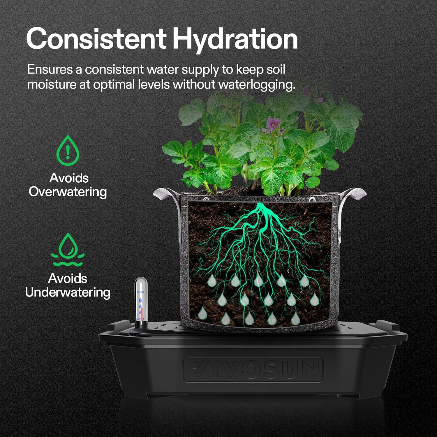 VIVOSUN 4-Pack FlexFeed Self-Watering Pots, Auto Irrigation Fabric Pot Base with Water Meter & Maintenance Window, for Use Indoors/Outdoors in Grow Tents, Greenhouses, Gardens