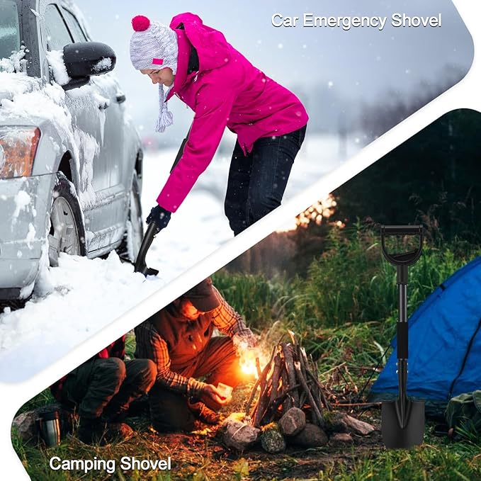 - Portable: Easy to assemble in less than a minute. Can be disassembled to put in a backpack or car trunk, or mounted on a truck for use while camping for emergencies. It is not only a garden shovel, beach shovel, but also a camping shovel and car emergency shovel.