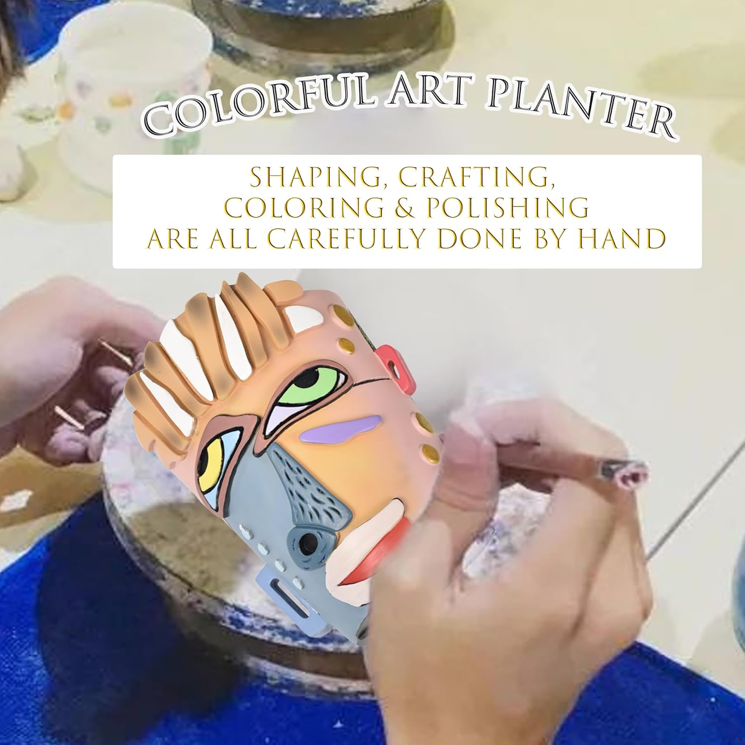 - 【Colorful and Imaginary】This face planter is a riot of colors!The abstract design is adorned with bright and vibrant hues,creating a visually stunning for your plants.It's like a piece of nature and art all rolled into one!