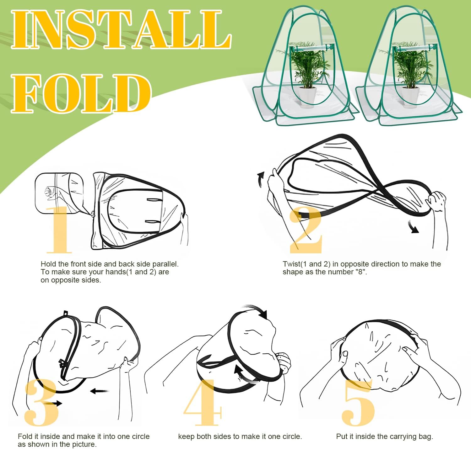 - ⏏️【Pop-up Design】Each greenhouse open size measures L27* W27* H31 Inch . It pops up within 1 second, no assemblely required and can be easily folded. A Round handbag is included. The compact and portable design allows for easy storage and transportation, so you can take your greenhouse wherever you go.