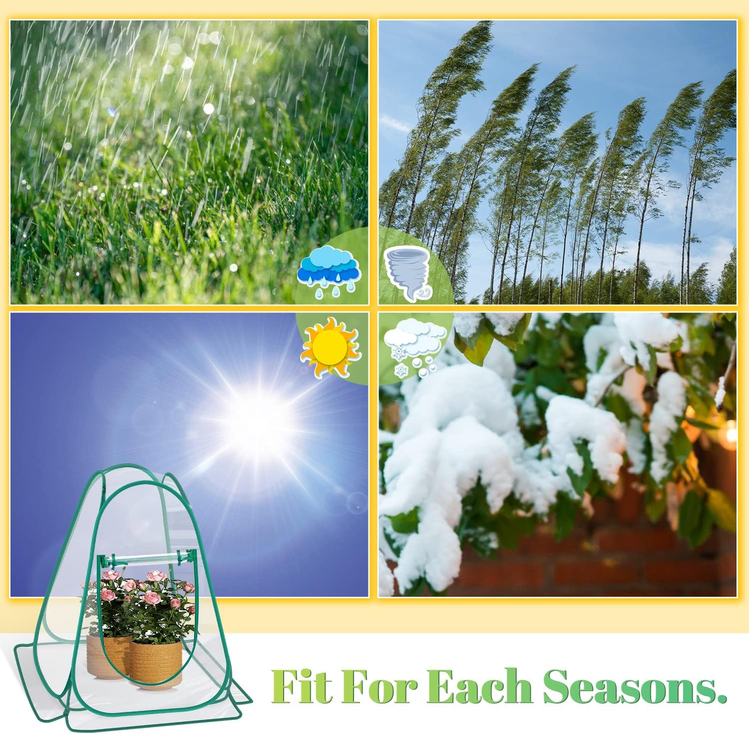 - 🌎【Stationary & Functions】The mini greenhouse comes with four ground nails. It can be fixed with the ground nail after deployment, So you can secure it in windy weather and you can also put stones on long side cover to stabilize it in stormy weather. It's waterproof and UV protected, provides a warm and humid environment for plants and extends growing season. Fit for each seasons.