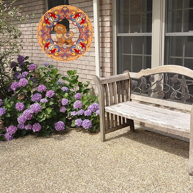 Dog Wind Spinner Colorful 12 inch 3D Stainless Steel Laser Cut Metal Double Sided Printing-Hanging Indoor/Outdoor Decorations Yard Gardening Decor,Metal Kinetic Art Ornament Gifts