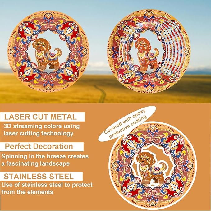 - 【Kinetic Art 3D Visual Sense】The colorful dog wind spinner can be multi-layer flip, the unique flow of light surface design, in the breeze under the 360 deg rotation, especially in the sunshine, this bright and charming landscape, is so natural elegance and brilliant colors