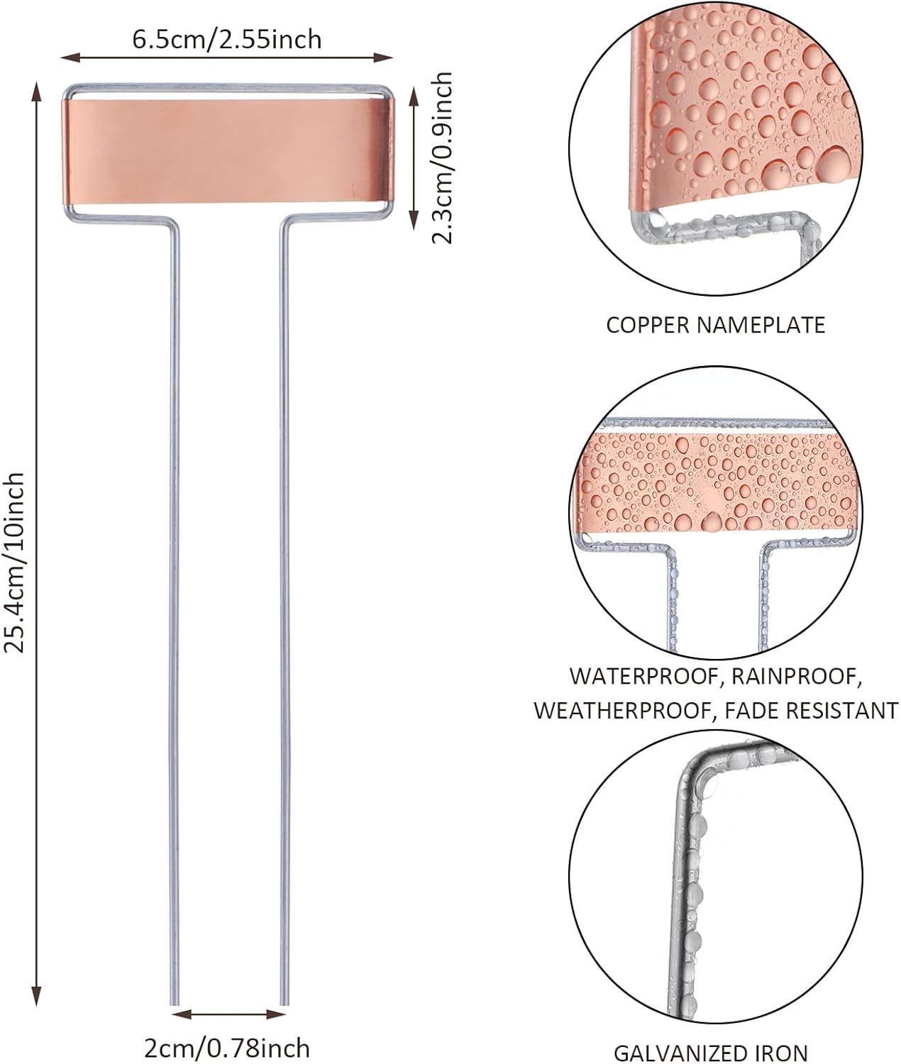 - Durable and Strong: The support part is made of stainless steel and the writing part is copper.Waterproof and Weatherproof, not easy to brittle or snap.When exposed to the elements copper develops a patina over time, it will add class to a garden. If you like to maintain the shiny copper, please coat the labels with a clear exterior.Suitable for long-term use.