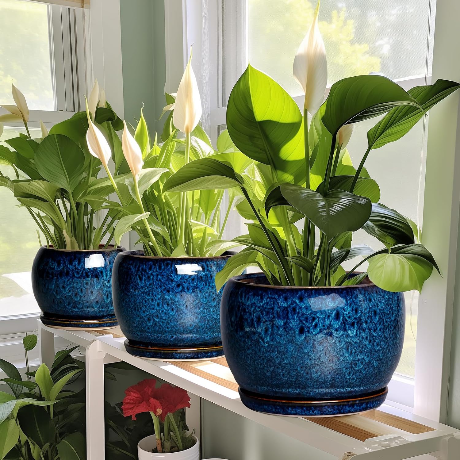 - Modern Design: Our blue ceramic pots for plants features a beautiful and smooth peacock blue glaze design, suitable for decorating your home, garden, patio, balcony, office and more