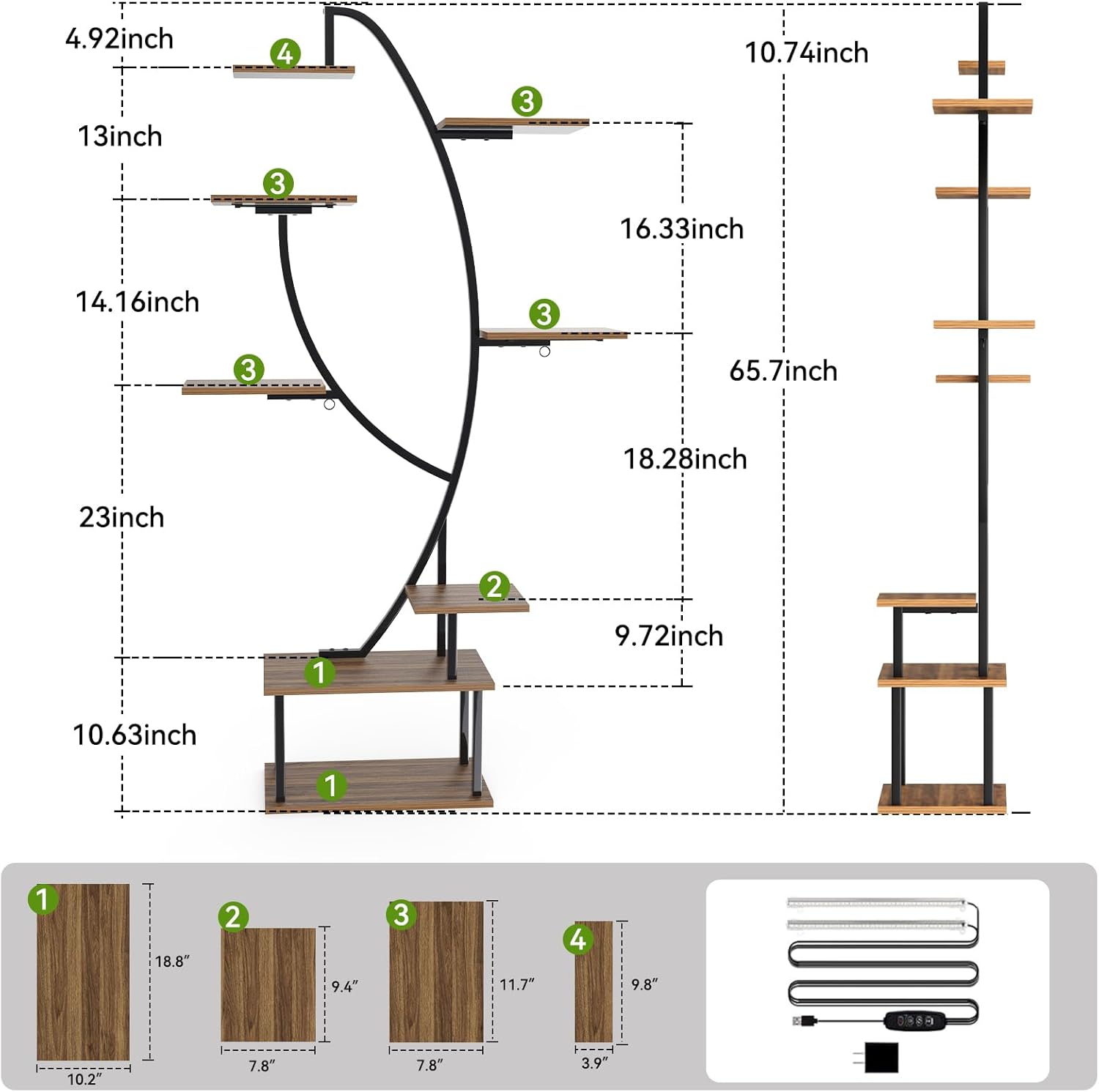 - 【Plant Stand with Grow Lights】 The plant stands features full-spectrum LED, mimicking natural sunlight. Adjust 10 brightness levels & 3 timing & 3 color temperature(3000K/4500K/6000K) provide the optimal light for different stage of plant growth. You can place this plant shelf indoors anywhere. No need to frequently move plants outdoors to absorb light. We are equipped with cable ties to avoid cluttered plant grow light wires.
