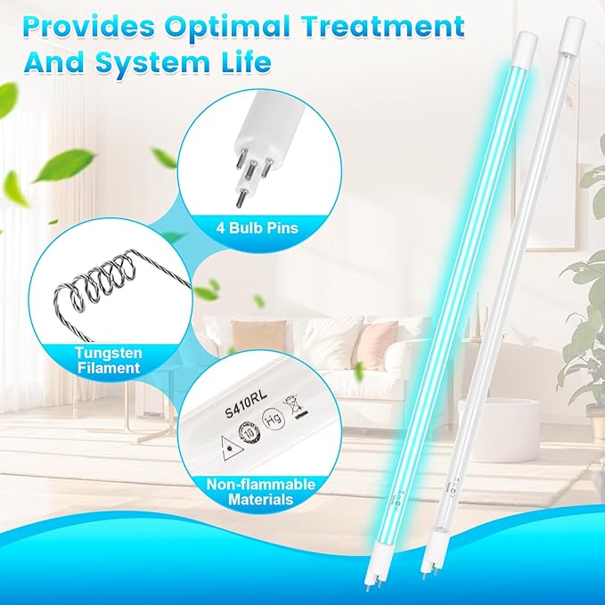 - PREMIUM NON-FLAMMABLE MATERIALS: The lamps for VIQUA VH410 use non-flammable materials and meet system requirements to reduce fire risk. The long-life coating and quartz lamp housing ensure the correct U V dosage, thus guaranteeing the proper treatment and safeguarding your health. The lamps that are used in the Viqua systems have a 18,000 life.
