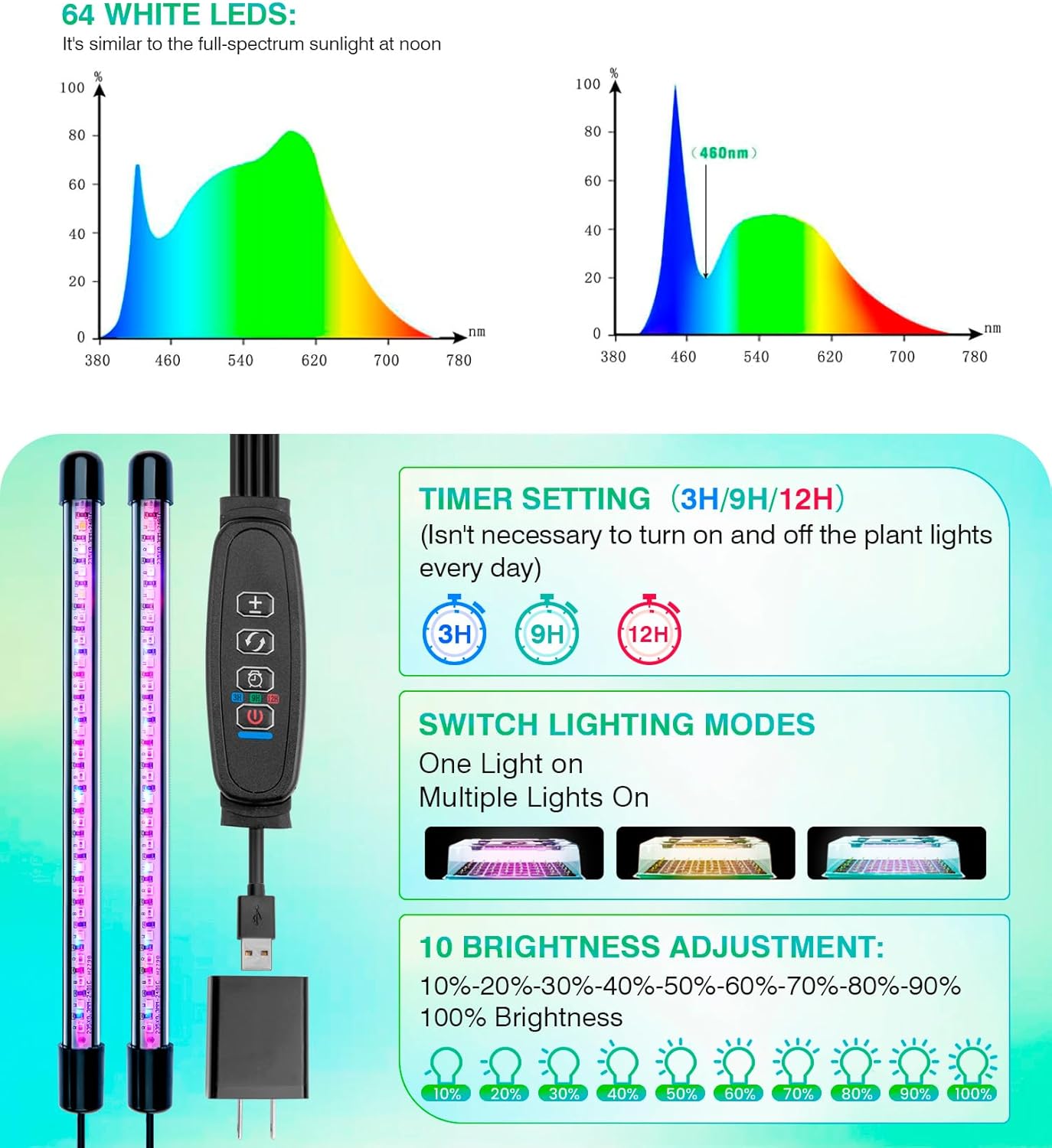 - Embedded Led Lamps:Each light is equipped with 4 blue and 16 white lamp beads, meticulously engineered to replicate natural sunlight.
