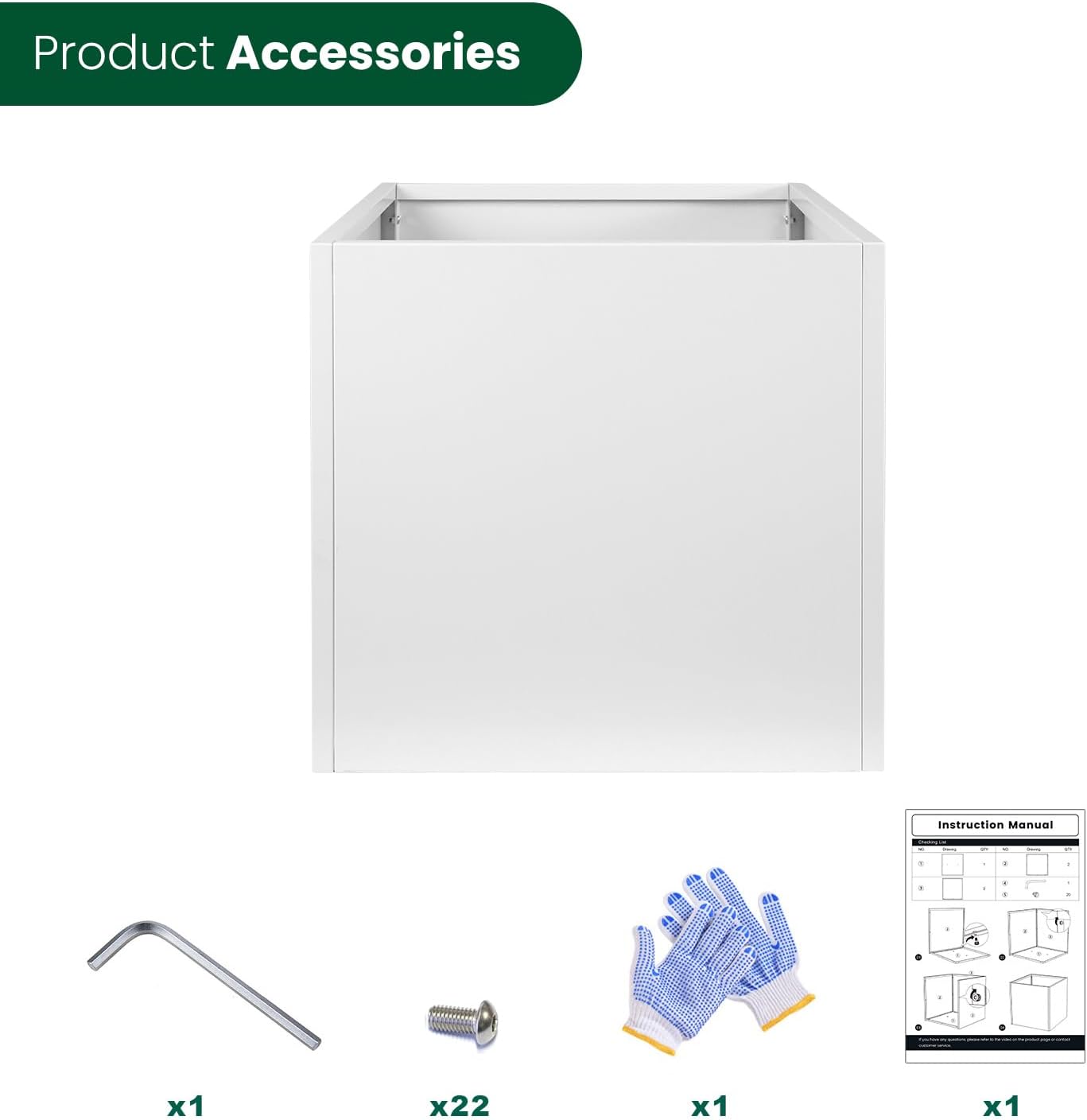 - [ Galvanized Steel Planter] 32" L x 32" W x 32" H. Heavy Duty Galvanized Steel Planter. Easy to Install. Package: 4 sides and a bottom surface with 2 drainage holes, Installation Manual x 1, M5 Allen wrench x 1, screw x 22, gloves x 1.