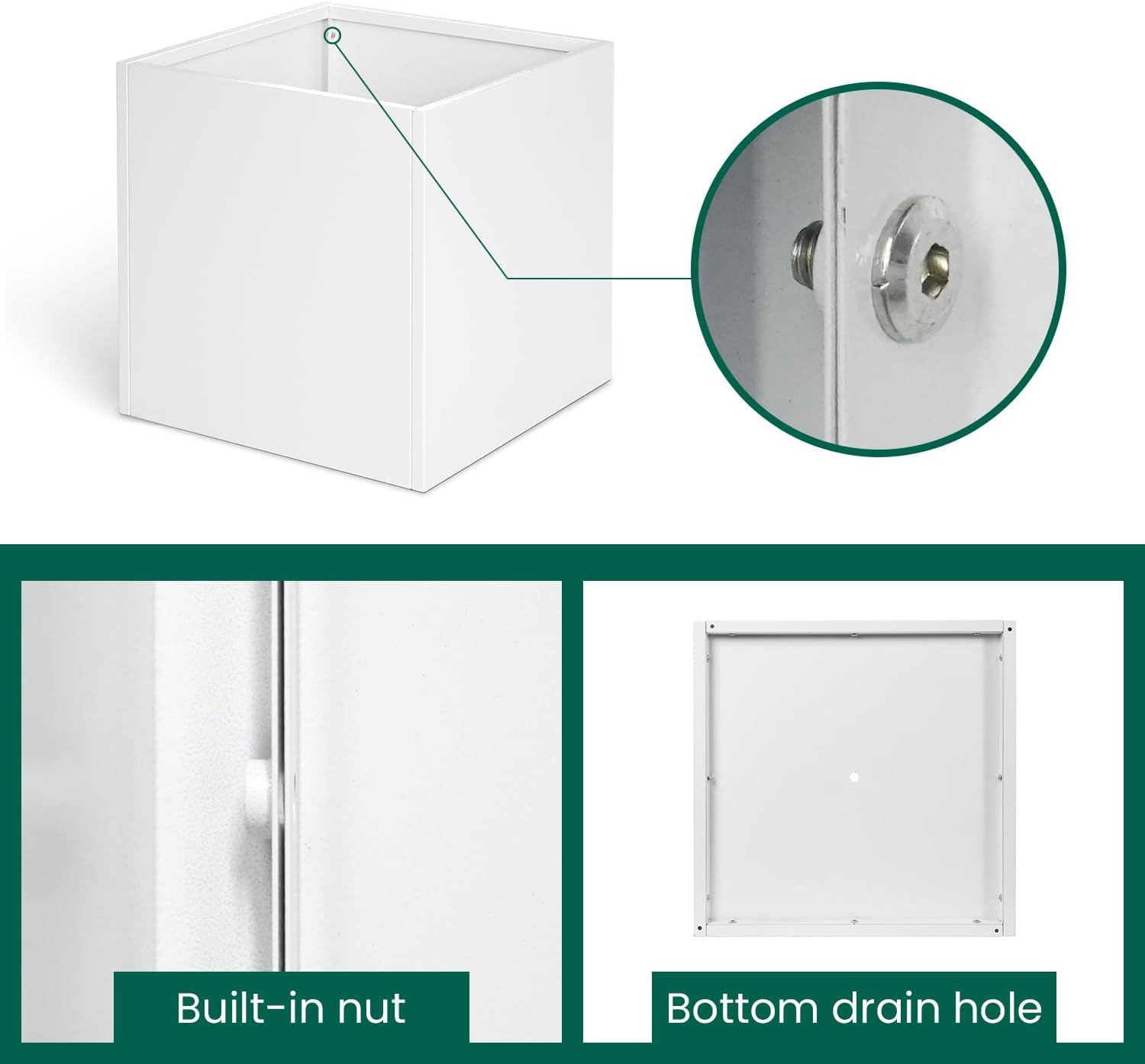 - [ White Steel Planter] Galvanized planter box is made of galvanized steel with white powder coating. Galvanized Steel Planter is wear-resistant, corrosion-resistant and long lifetime.