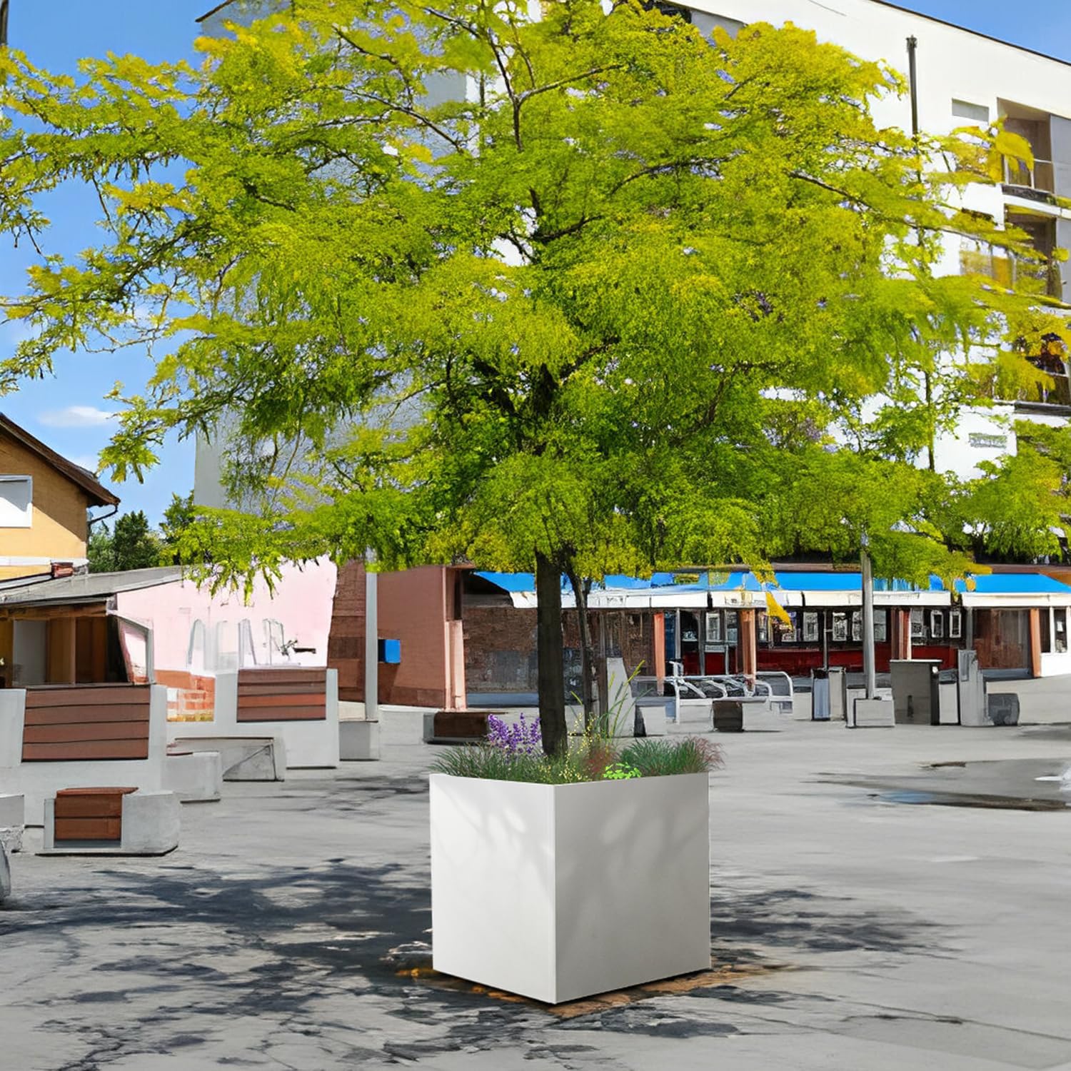 White Steel Planter Square Outdoor Planters Galvanized Steel Planter Box Indoor Metal Large Planters Cube Heavy Duty Flower Pot 32 Inch Modern Commercial Residential for Trees Patio Deck Yard Garden