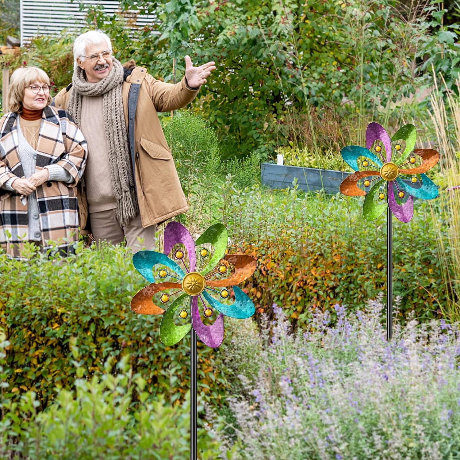 - Multipurpose Wind Spinners: Whether as a holiday present or for special occasions, this iron windmill is a great choice that reflects quality and thoughtfulness. Wind Spinners with Metal Stake is perfect for indoor and outdoor. It will bring much fun, color, and vitality to your garden, lawn, yard, pathway.