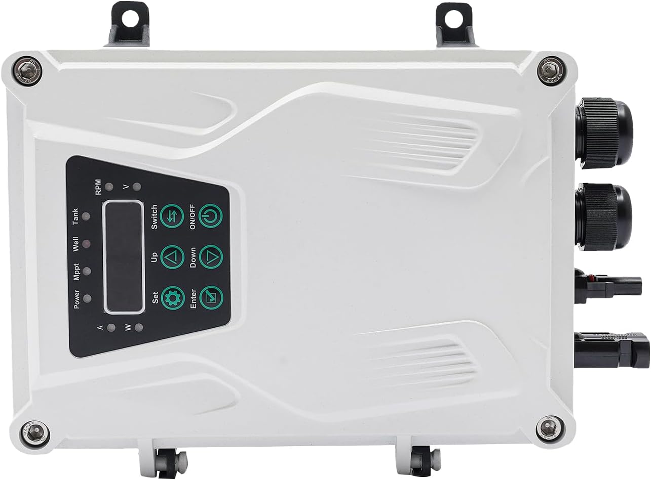- High-Quality Controller: The solar water pump controller utilizing MPPT technology to ensure maximum flow is delivered under all light conditions. At the same time, it can also charge the battery and store excess solar energy in the battery. It comes with LED lights and LCD display so you can check the working status of the pump.