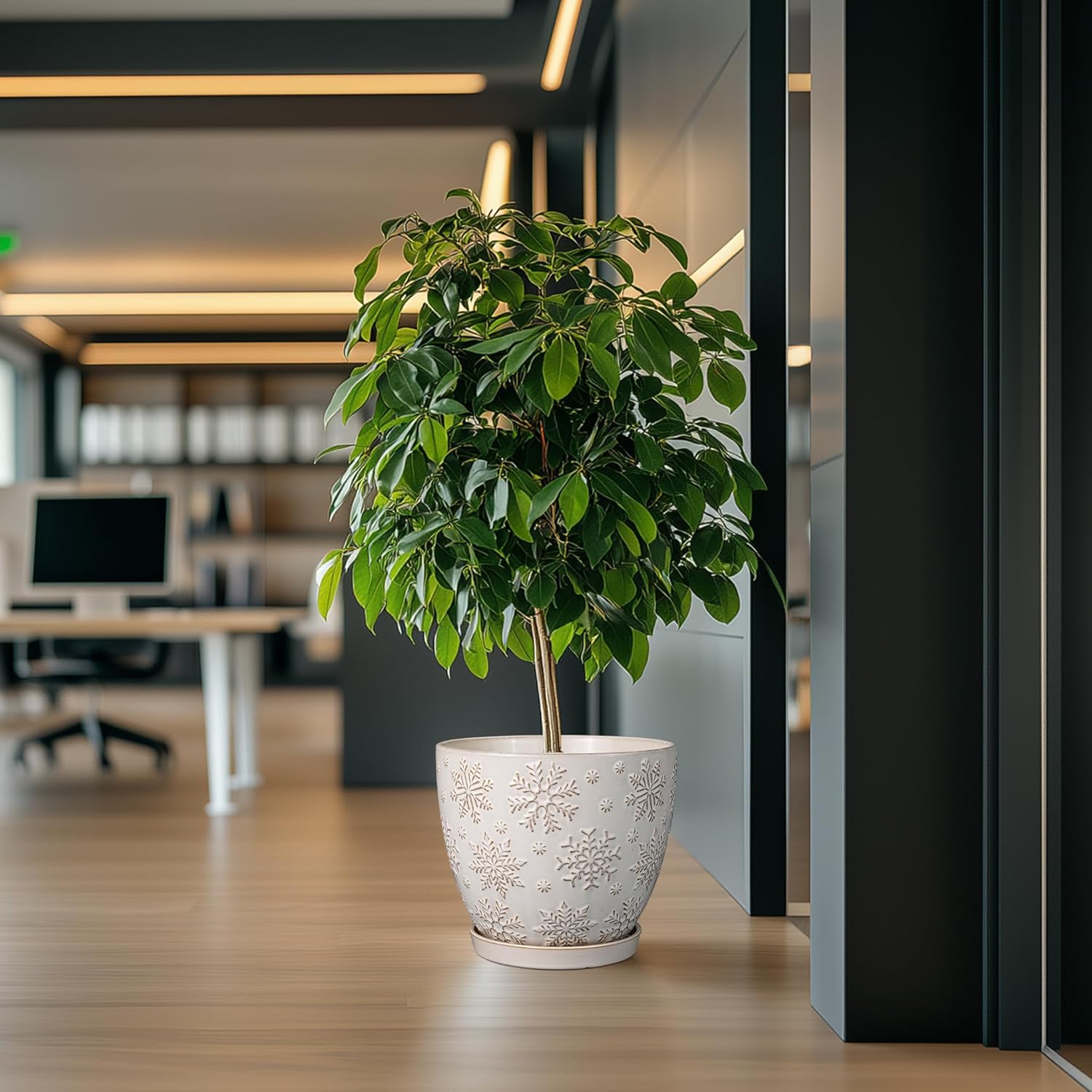 - Stylish Appearance: Our ceramic planter has a white main colour and a beautiful embossed snowflakes pattern on the surface, elegant appearance making it ideal for home decor, garden decor and office decor