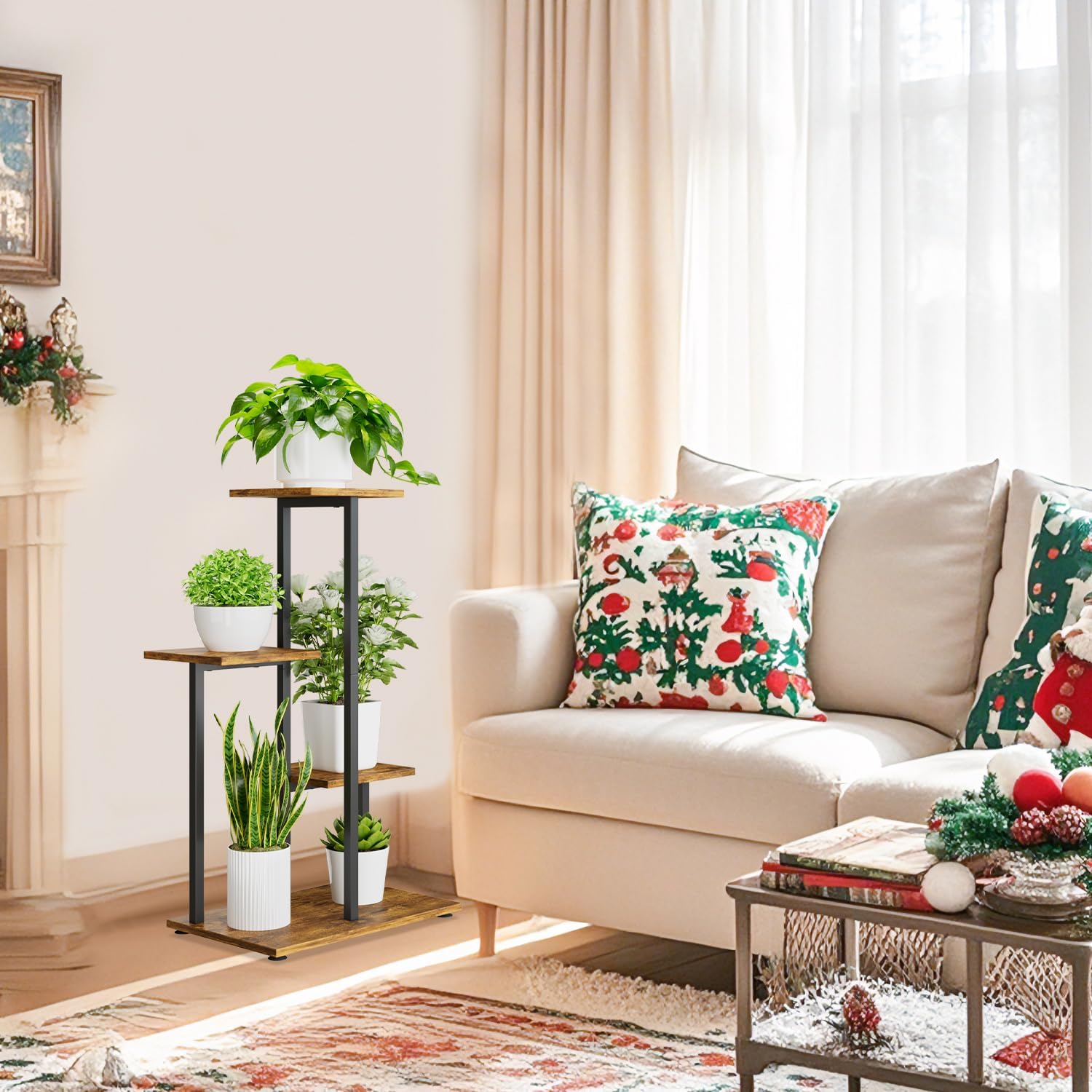 iDavosic.ly 4 Tier Plant Stand Indoor, Tiered Corner Plant Shelf for Multiple Plants, Metal Wood Tall Plant Display Rack Flower Holder for Patio Porch Garden Balcony Bedroom, Black
