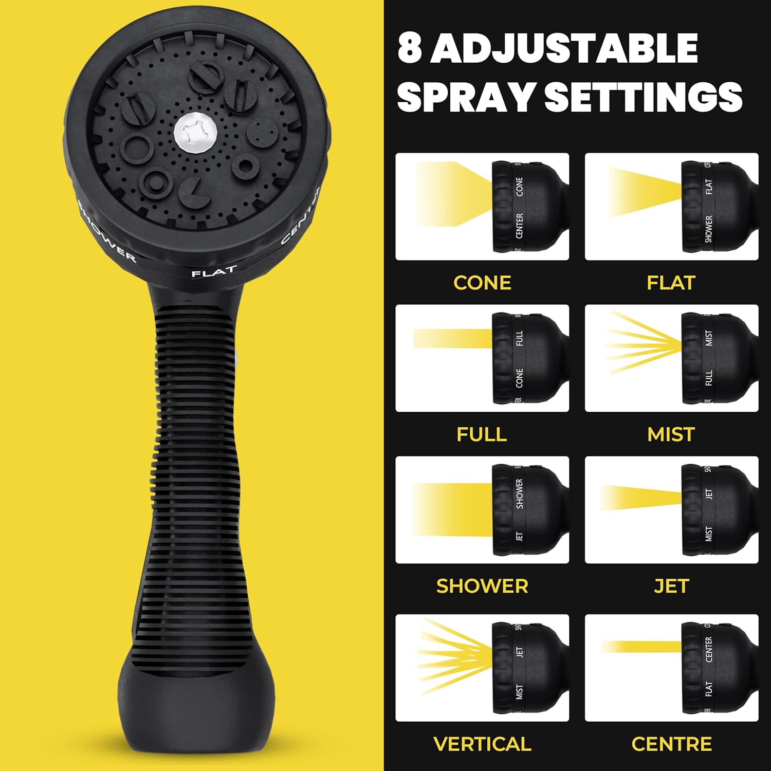 - 🚿 9 Spray Modes = 1 Happy Hose Boss Mist, jet, shower... whatever your watering mood, we’ve got a spray for that. The 9-function nozzle lets you tackle every job — from giving your plants a gentle drink to blasting mud off your tires. One hose, endless uses!