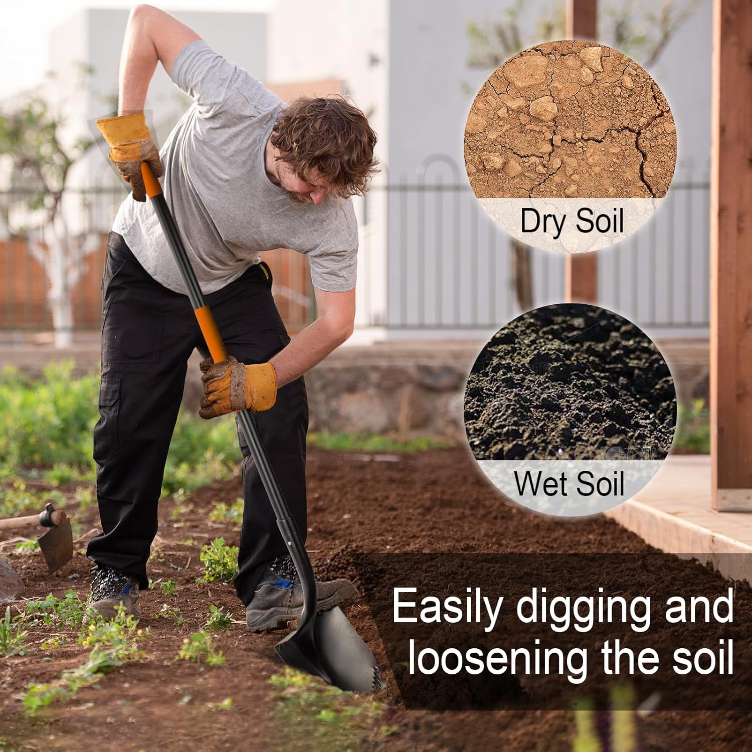 - Sharp Efficient Shovel Head: The head of the shovel is made of a serrated sharp blade, which can cut into the soil more easily and cut the roots of plants easily, and it is equipped with non-slip pedals on the metal head, which provides more stable downward pressure through the feet when using to ensure more efficient work.