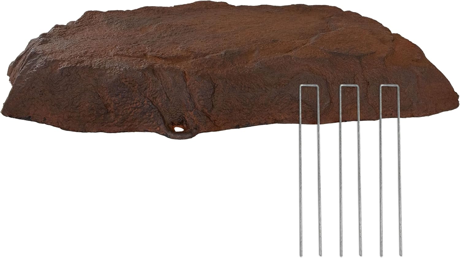 - DURABLE AGAINST THE ELEMENTS: This plastic hollow landscape rock includes metal stakes to keep it anchored to the ground in windy conditions.