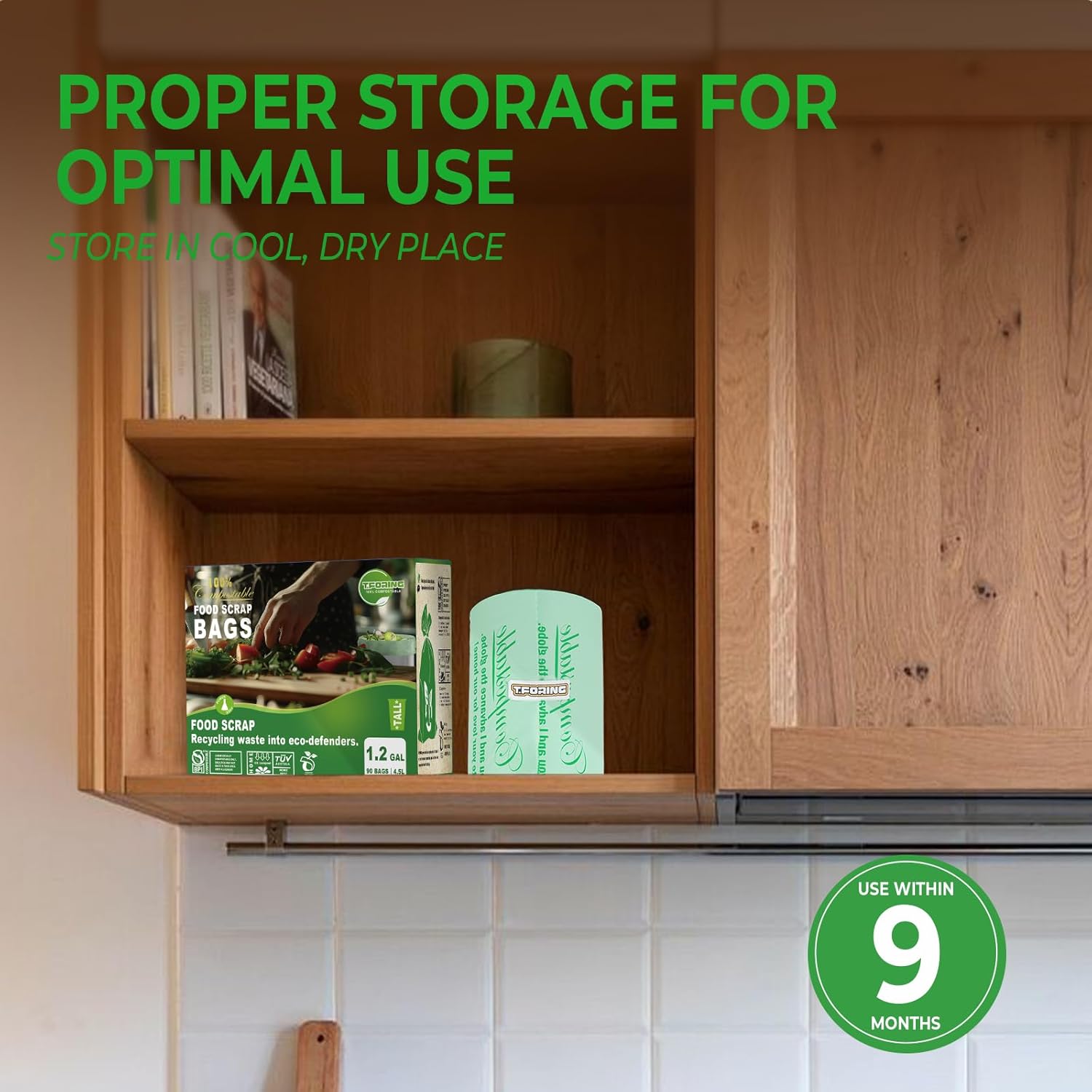 - 【1.2 Gallon Compost Bags】Just the right size to perfectly fit most small trash cans. The 1.2 gallon trash bags are 15” W x 15.7''H,0.8 Mil Thick,suitable for 4.5L Countertop Bin. 80 Bags Per Roll.