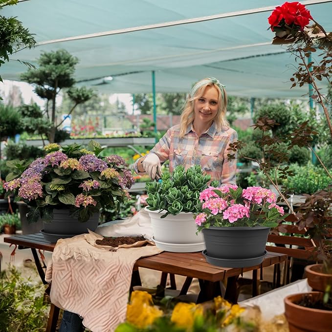 - 【Plant Pots Outdoor Indoor 】Plastic pots for plants can be used to decorate your indoor areas such as living rooms, bedrooms, windowsills, desktops, shelves, or outdoor areas such as gardens, foyers, yards, terraces, offices, and more. These large flower pots can bring a modern and stylish visual expression to your home without any incongruity.