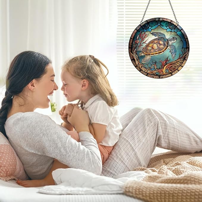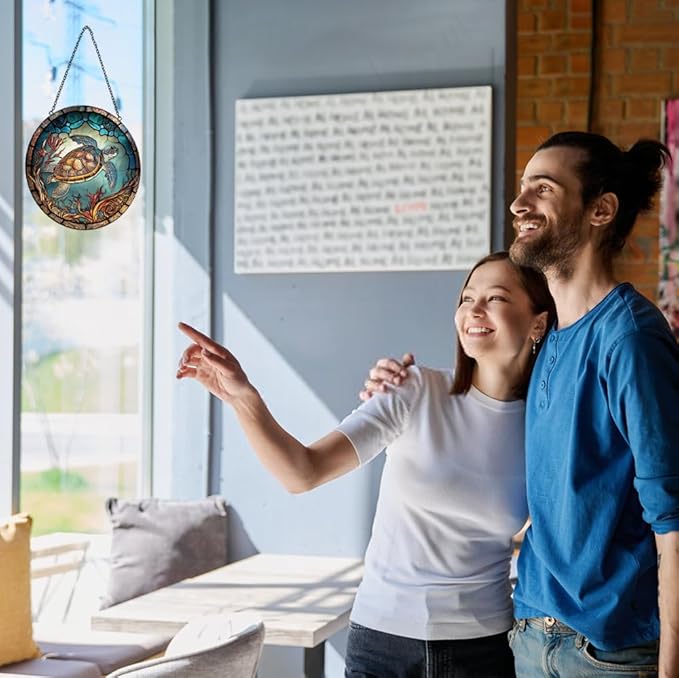 - 【Handmade Suncatcher Stained Glass】Turtle window suncatcher is made with high-end stained glass. Each stained glass window hangings is meticulously crafted by skilled artisans, ensuring a unique and elegant design that adds a touch of sophistication to any window. Stained glass window hangings is made of 100% stained glass, not acrylic/plastic/metal, etc material.