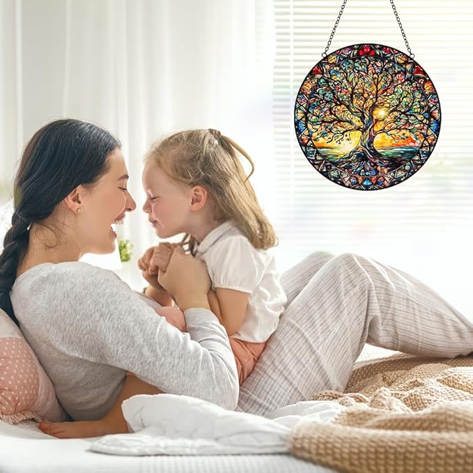 - 【Exquisite Festival Gift Memorial】The tree of life decor stained glass suncatchers for windows hanging is a lovely gift for your mother, daughter, sister, friends, family, lover or nature enthusiast, can be decor glass doors, porch, kitchen windows, upstairs windows, round top windows, front windows, bedroom windows, kitchen doors, our hand-painted window suncatcher would be a great embellishment to your house. Suitable for Mother's Day gifts, Birthday gifts, Christmas gifts, Thanksgiving gifts, Friendsgiving gifts.