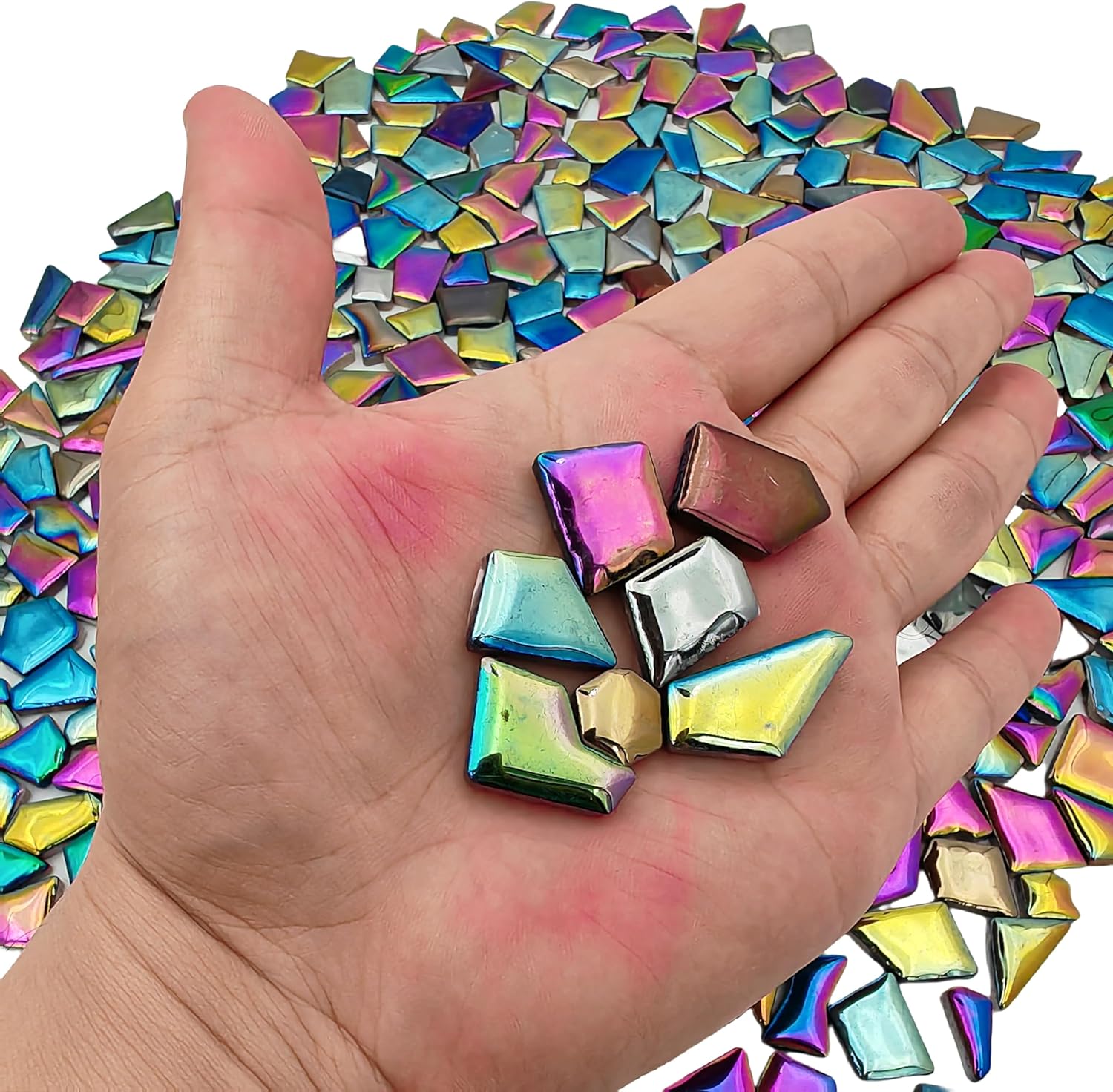 1.1LB Irregular Ceramics Mosaic Tiles, Mosaic Pieces Stones for DIY Mosaic Making Craft Hobby Arts Home Wall Decoration (Mix Rainbow)