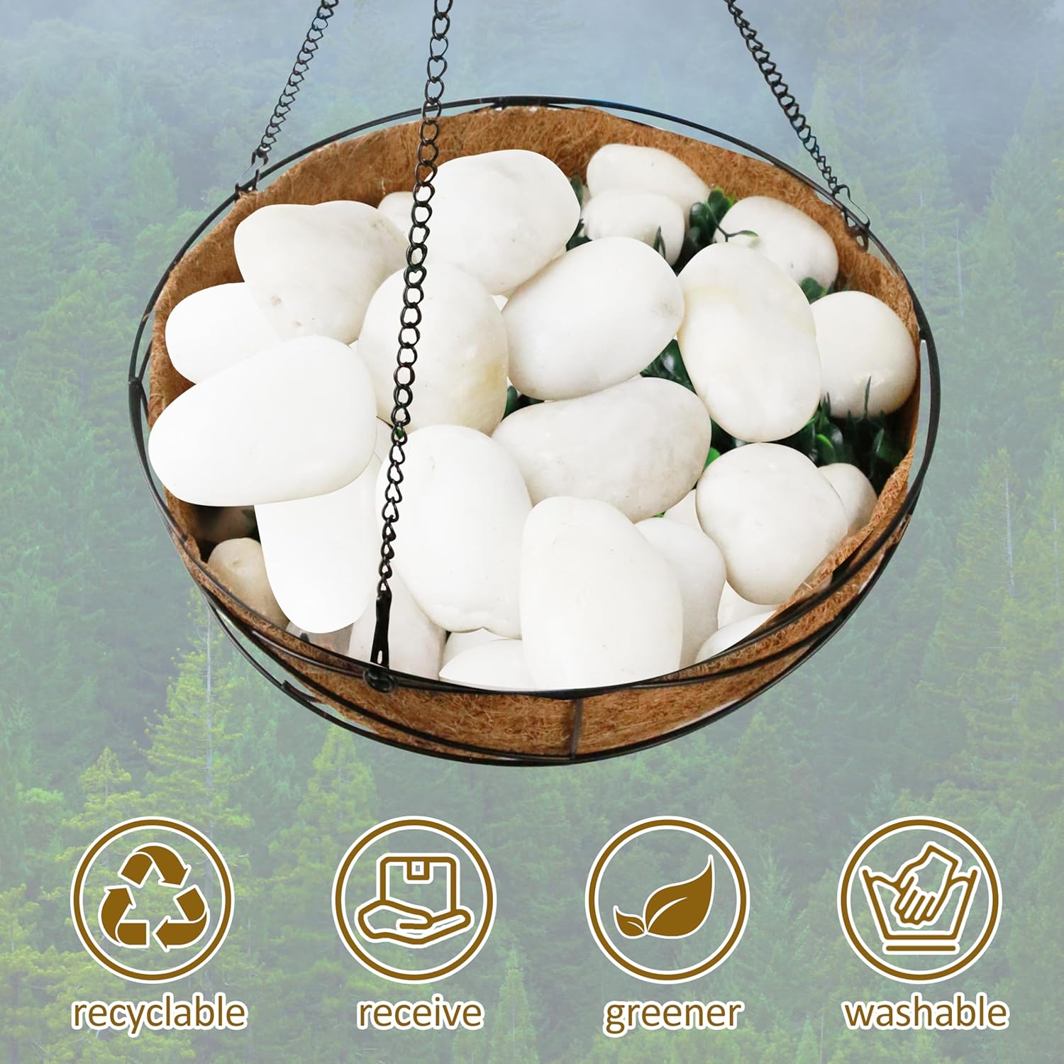 - 【5 LBS WHITE PEBBLES】- The diameter of each white river rock is approximately 2-3 inches. Composed of natural river rocks, the material will undergoes screening and extensive polishing to achieve rounded edges and corners. Following cleaning and waxing processes, it will be picked by the professional person to to remove the damaged defects, thereby ensuring the delivery of optimal products to consumers.