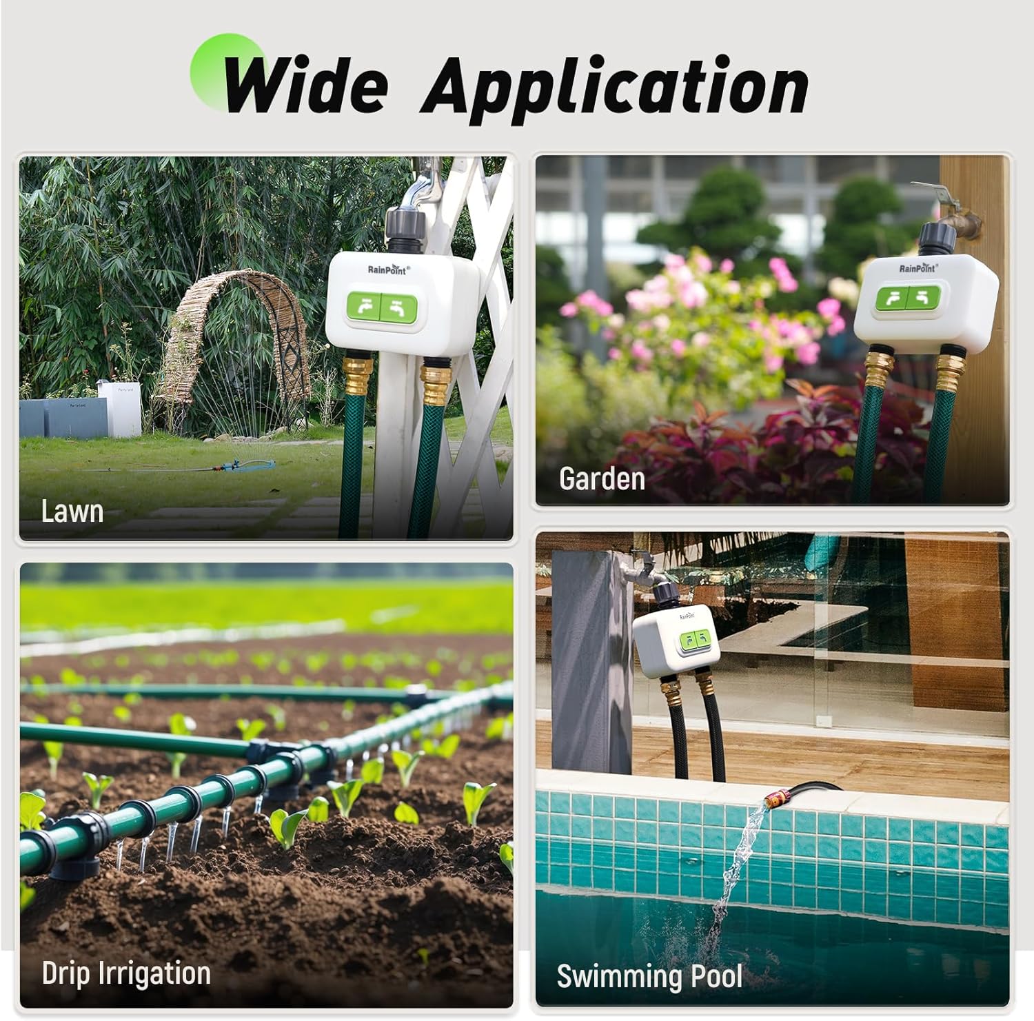 - 【Dual-Zone Tailored Watering Solutions】With two programmable zones, Our Smart Watering Timer lets you create customized watering schedules for different areas of your garden. Whether you have a lawn, flower beds, shrubs, or vegetable garden, you can adjust the settings for each zone independently to ensure optimal moisture levels for healthy plant growth.