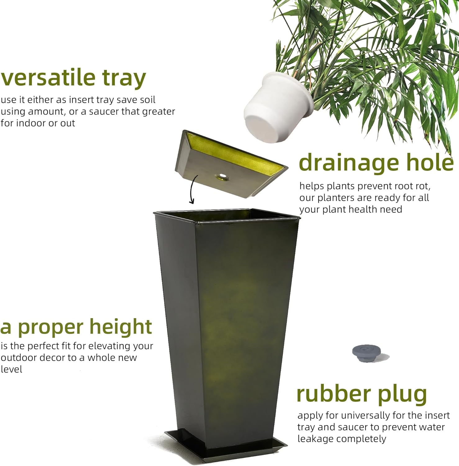 - Convenient Drainage: Each planter comes with a pre-drilled drainage hole, allowing excess water to drain and preventing root rot; The insert tray can be used as a centre divider or placed at the bottom to collect excess water
