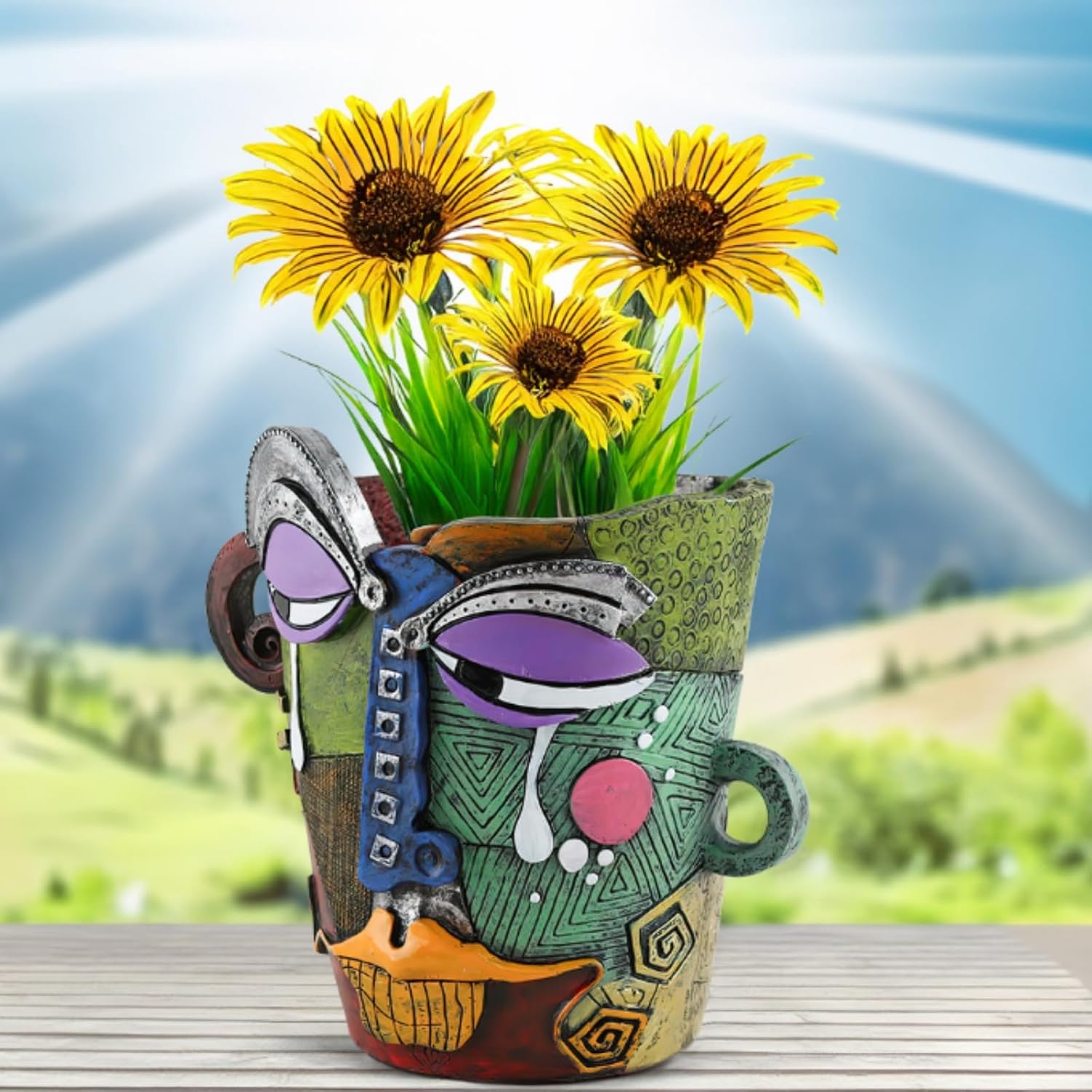 New Picassos Abstract Beauty Face Flower Pot, Colorful Abstract Head Plant Pots, Interesting Decorative Flower Resin Flower Pot, Unique Flower Pots for Home Art Decoration (multicolor-A03)
