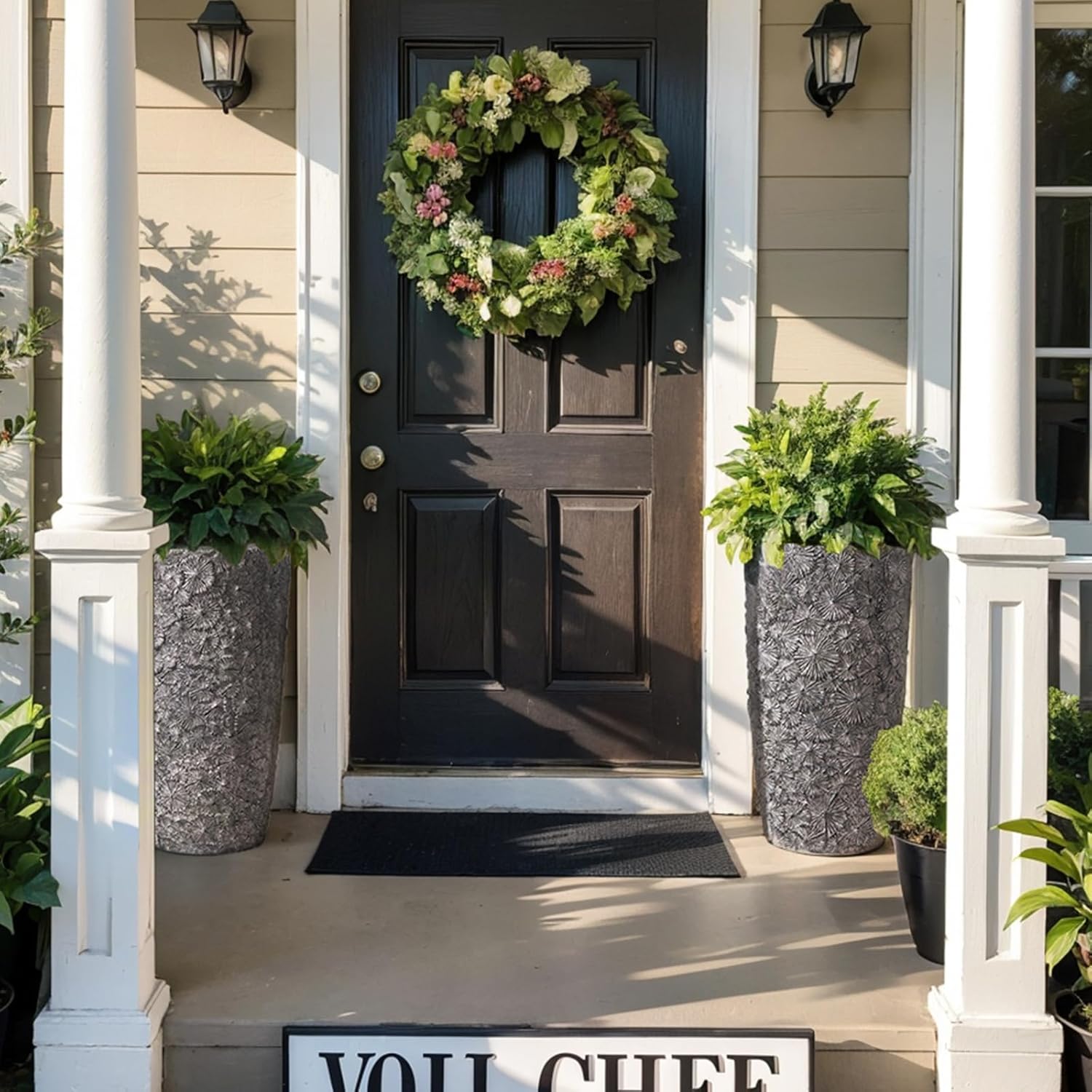 Yundu 16 & 20 inch high Concrete Plant pots Set of 2. Flower pots with Drainage Hole. Tall planters for Indoor Plants, Large planters for Outdoor Plants, Such as Garden, Patio and Front Porch Decor.