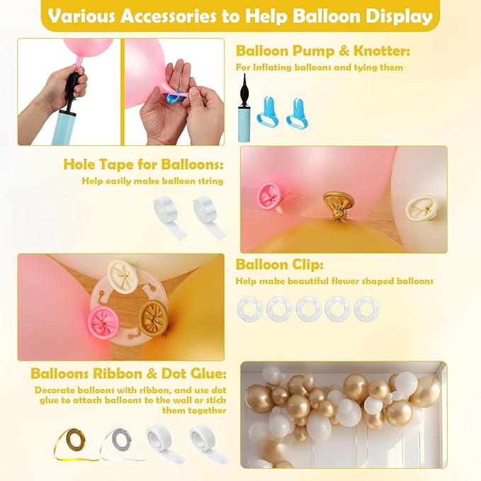 - ๐๐จ๐ฆ๐ฉ๐ฅ๐๐ญ๐ ๐๐๐๐๐ข๐ง๐ ๐๐ซ๐๐ก ๐๐ญ๐๐ง๐ ๐๐ข๐ญ: This versatile backdrop arch stand includes essential accessories such as 2pcs of dot glue, 2pcs of balloon chains, 50pcs of balloon clips, and 2pcs of balloon weights, allowing you to create a stunning balloon garland stand. The kit also comes with 2pcs of iridescent balloon ribbons and a hand pump for easy balloon inflation, making it a complete solution for your decorating needs.