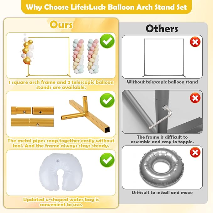- ๐๐ญ๐ฎ๐ซ๐๐ฒ ๐๐๐ญ๐๐ฅ ๐๐ซ๐๐ก ๐๐๐๐ค๐๐ซ๐จ๐ฉ ๐๐ญ๐๐ง๐: Our wedding arch backdrop stand, standing at 6.5FT, is constructed from high-quality metal, ensuring durability and stability. This wedding arch frame with 2 pcs adjustable balloon arch stand the balloon arch kit base and PVC pipe are made of brand new PVC plastic, Which is sturdy and environmentally friendly