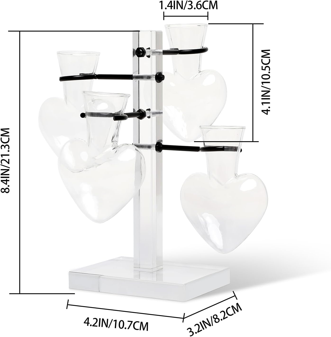 Clear Plants Propagation Stations Terrarium Kit Birthday Gift for Women for Indoor Home Office Decor Acrylic Plant Accessories - 4 Love Hear Vase