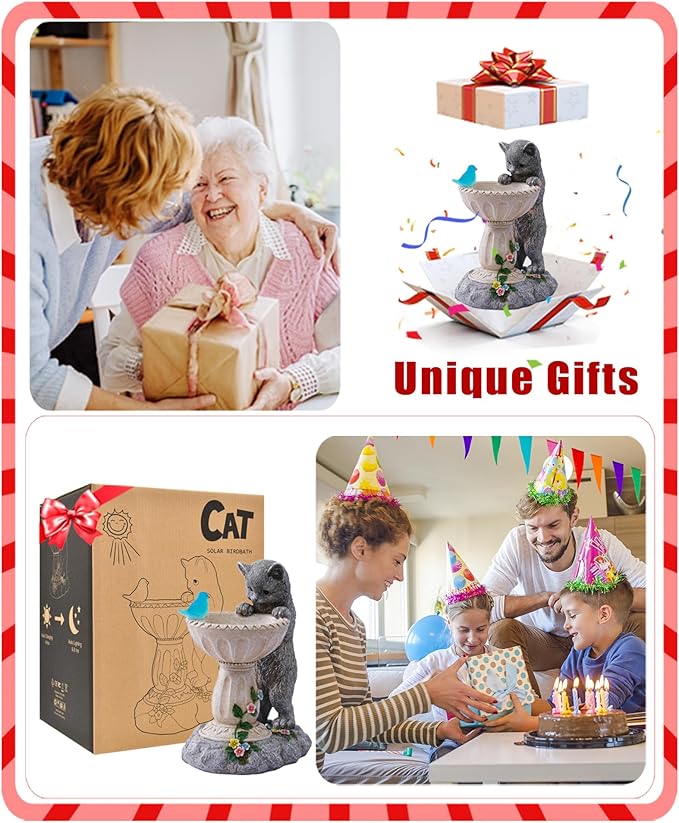 Nacome Solar Cat Birdbath Garden Decor: Outdoor Statues Ornaments for Outside Decoratios Yard Art Lawn Porch Patio Balcony - Birthday Gifts Choice for Mom Grandma Women Lover