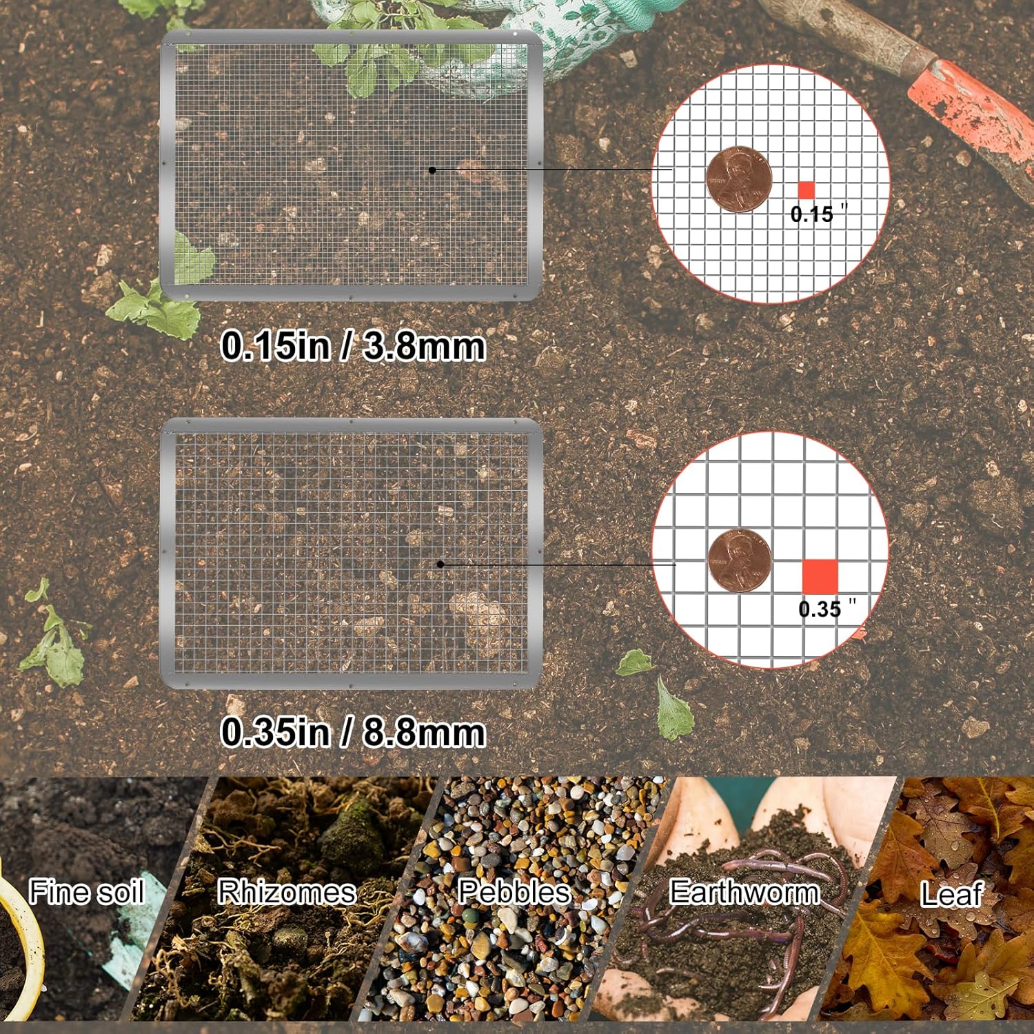 - Multi-Purpose Gardening Tools: Suitable for a variety of gardening tasks including sifting sand, soil, dirt, leaves, twigs, compost and other debris including preparing seedbeds, amending potting mix and more.