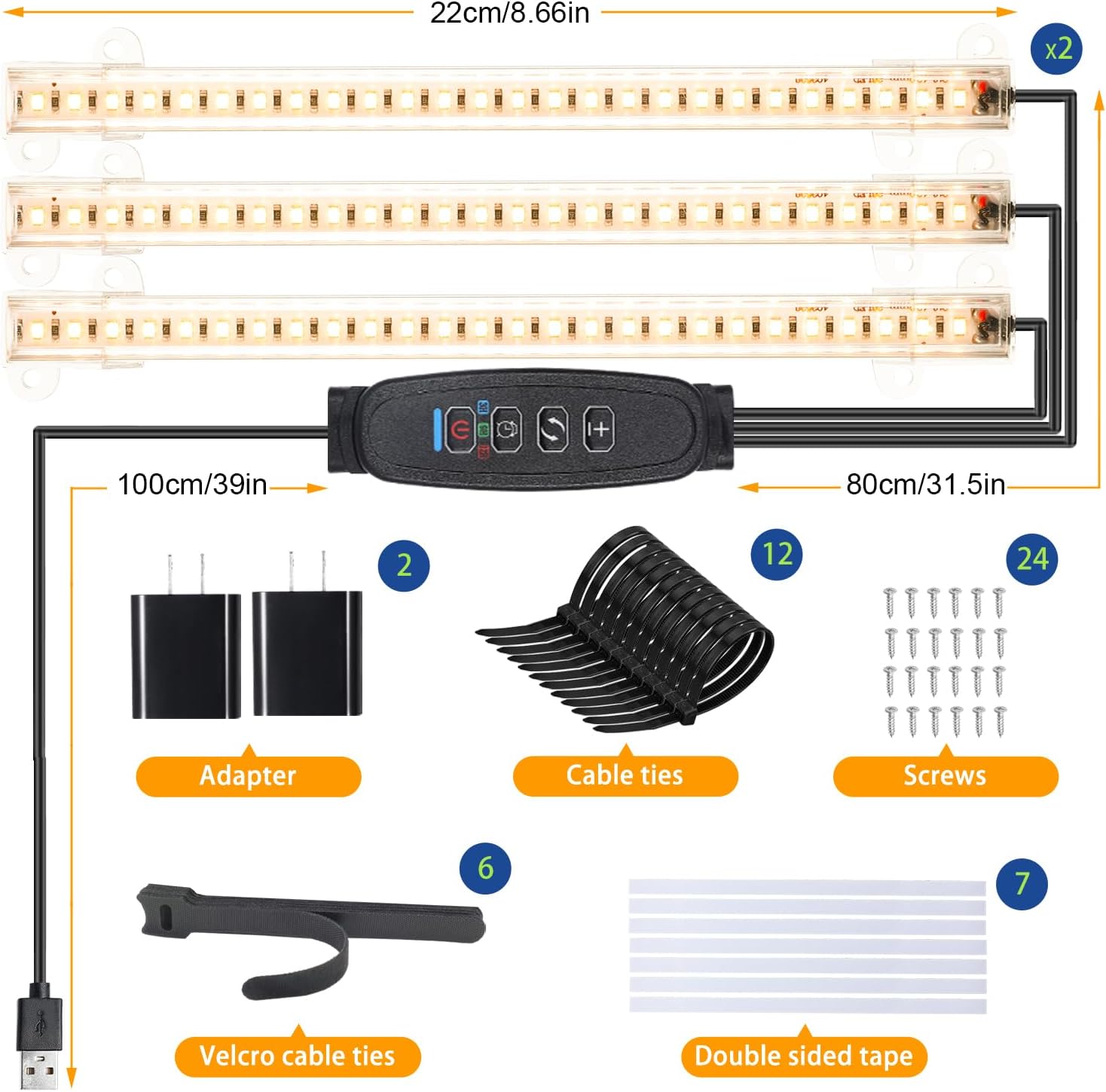 - 【8.6'' Light Strip and 2*78 Full Spectrum LEDs】The Grow Light has 2*78 LEDs and each light bar has 26pcs 3000K LEDs. High quality LEDs help plants grow with high light efficiency, high PPFD, low heat and longer lifespan. Indoor plant light emits all wavelengths from 380nm to 800nm, simulating natural sunlight to more effectively promote the growth of indoor plants.