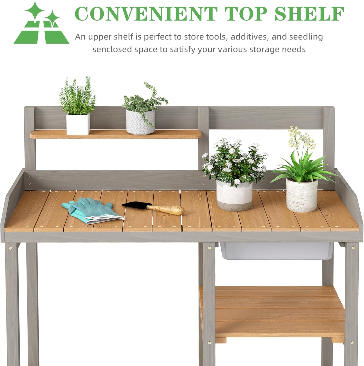 - Innovative Features: The potting bench includes a sliding tabletop with a built-in dry sink, protecting your soil and fertilizer while simplifying potting and reducing mess.