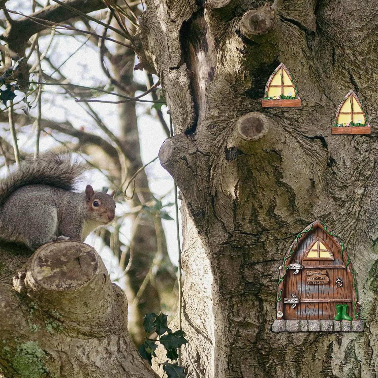 Resin Fairy Door and Window for Trees,Glow in The Dark,Miniature Fairy Garden Accessories,Garden Outdoor Decor for Trees,Gnomes House,Elf House