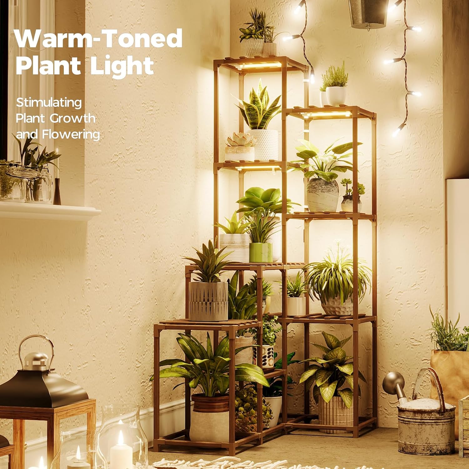 Bamworld Corner Plant Stand With Grow Lights - Tall Shelf Indoor Outdoor for Multiple Plants - Wood Table 7 Pots Flower Stands for Living Room Rack