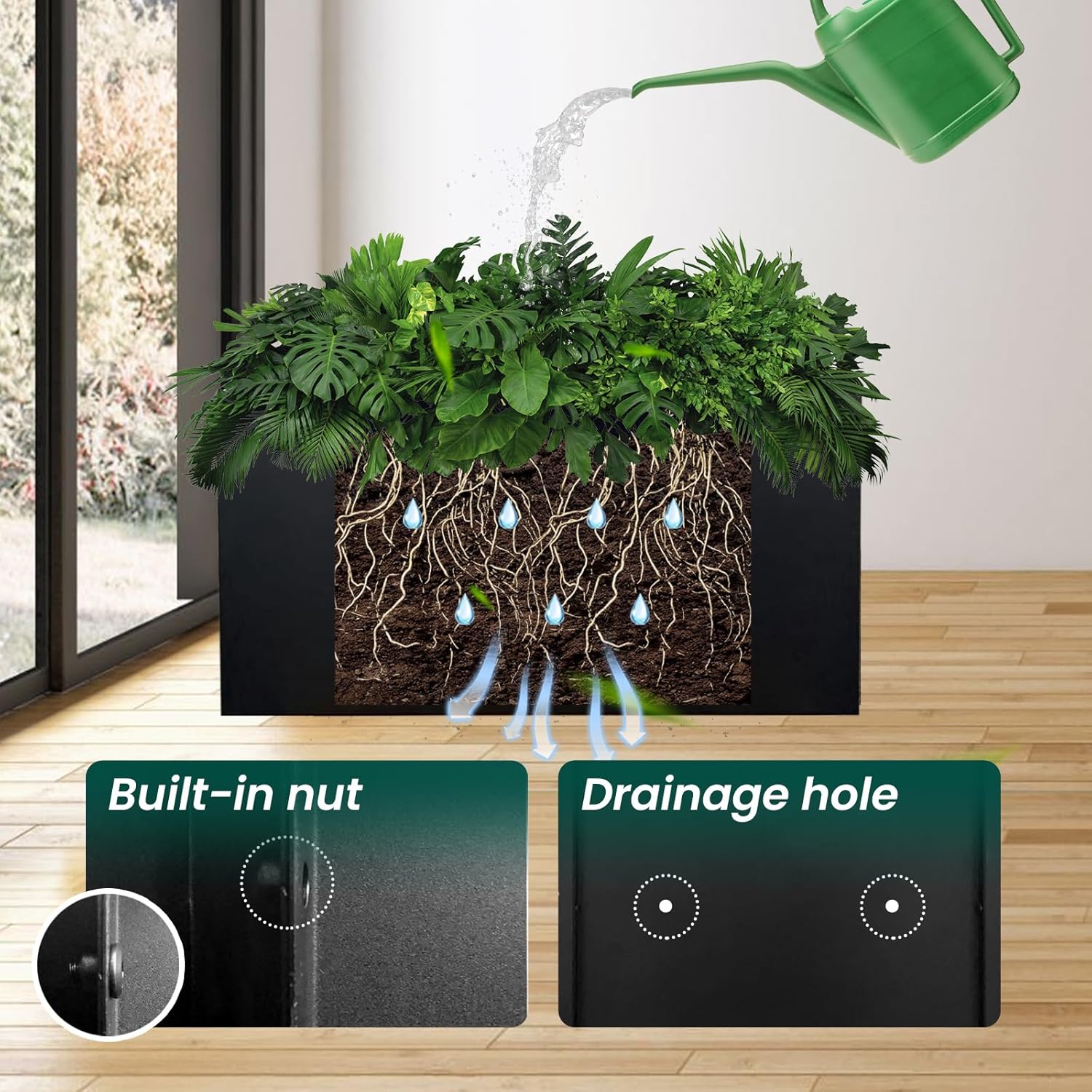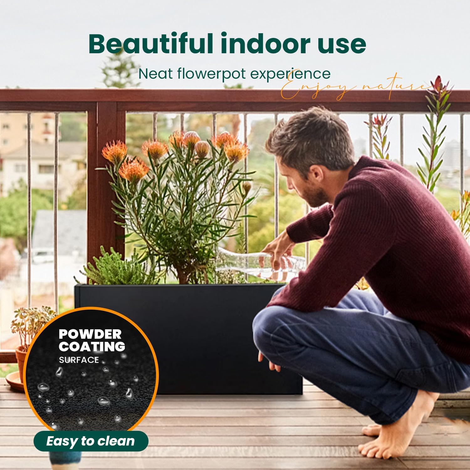 - [ Black Rectangular Planter] Galvanized planter box is made of galvanized steel with black powder coating. Galvanized Steel Planter is wear-resistant, corrosion-resistant and long lifetime.