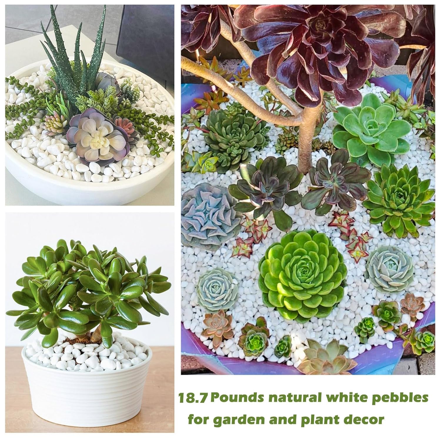 - Natural Pebbles for Plants: Unlike wood mulch, which will deteriorate, these 0.6 - 0.8 inches small stones are more cost-effective and will retain their original color after being used for a period of time. These snow-white river rocks are great decorative stones for your bamboo plants, succulent plants, and various indoor and outdoor house plants.